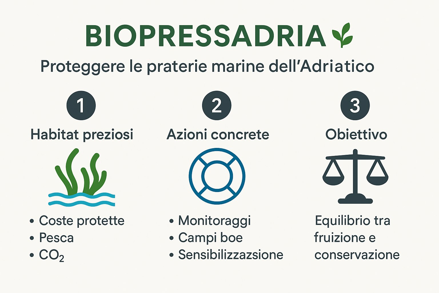 BIOPRESSADRIA promuove monitoraggi, attività di sensibilizzazione e strategie comuni tra Italia e Croazia per preservare questi habitat preziosi e garantire un equilibrio tra fruizione e conservazione del mare.